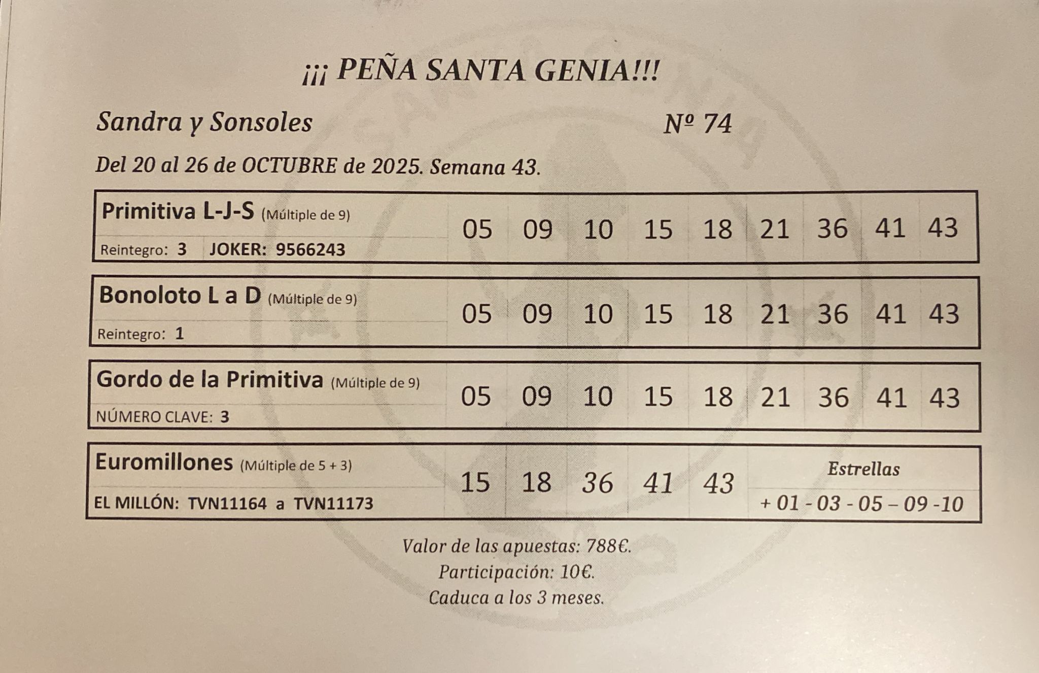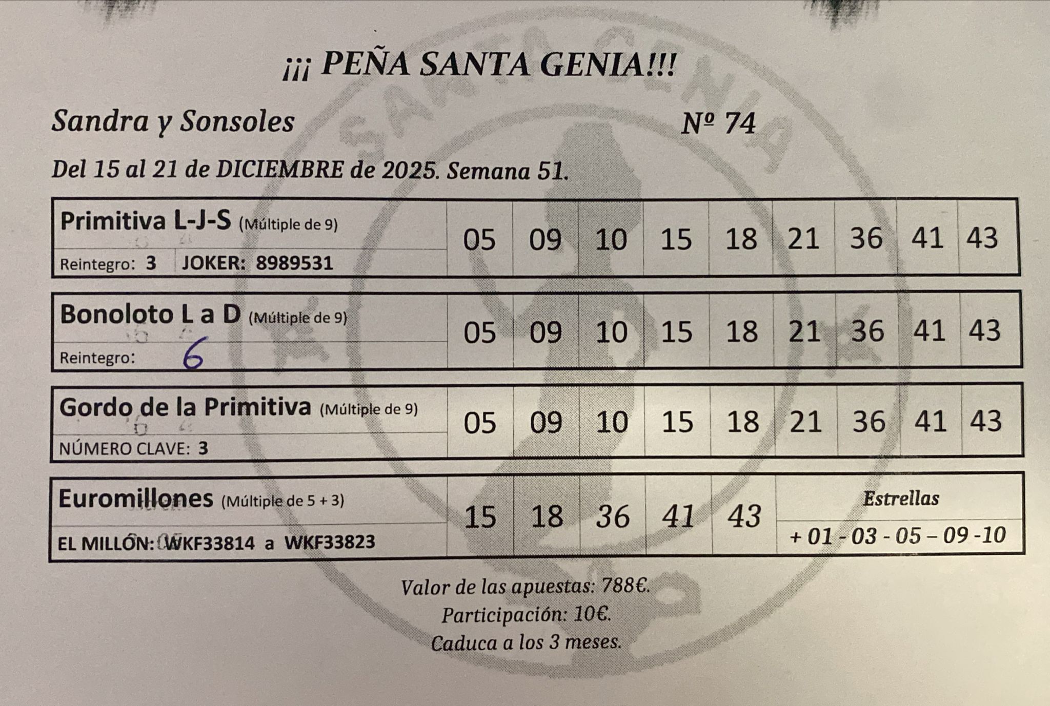 Peñas Exclusivas de LOTERÍA SANTA GENIA