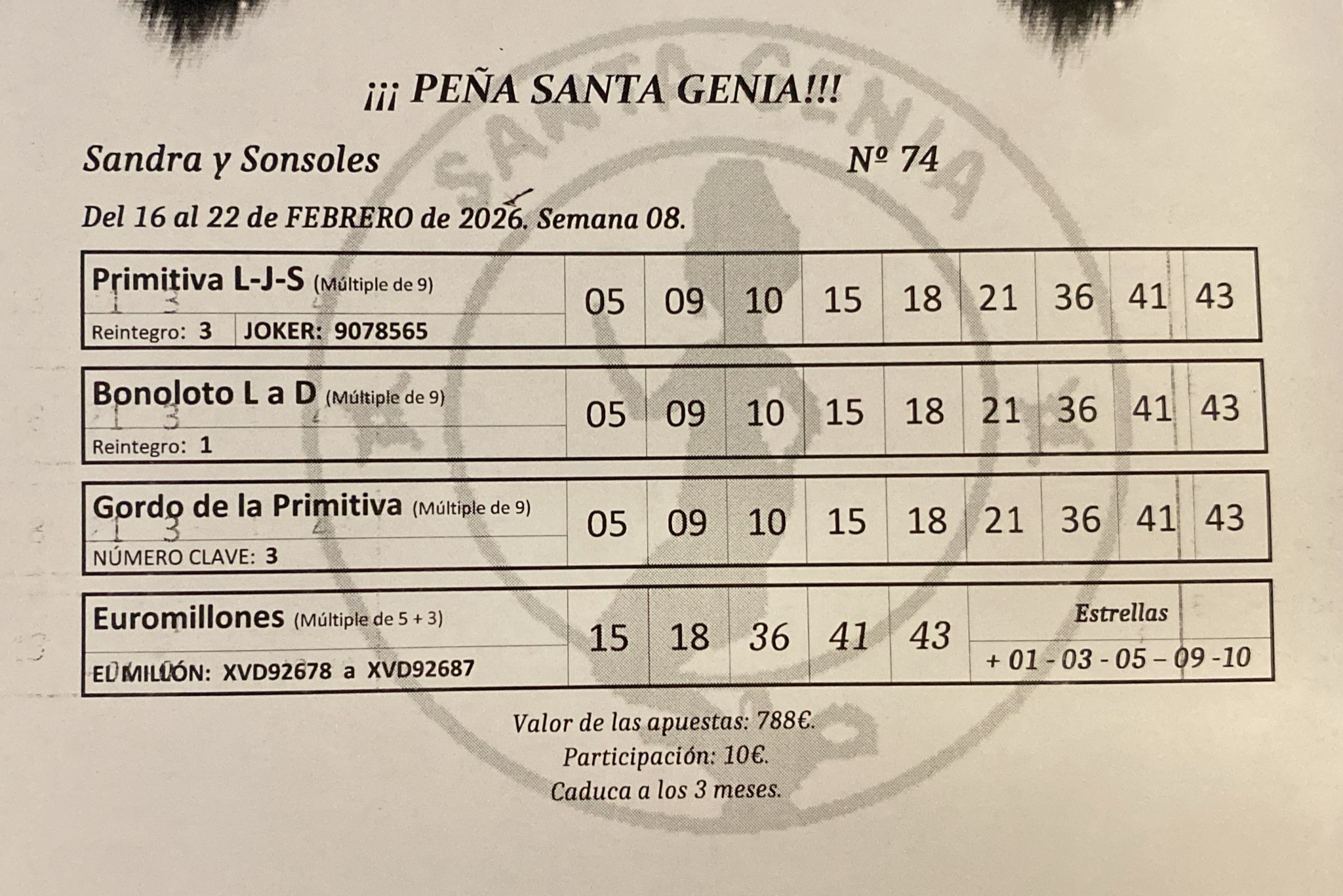 Peñas Exclusivas de LOTERÍA SANTA GENIA